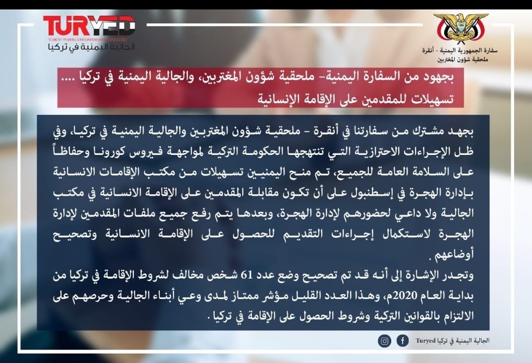 الإخوة والأخوات أبناء الجالية اليمنية في تركيا الأكارم السلام عليكم ورحمة الله وبركاته وحفظ الله الجميع من كل سوء في...
